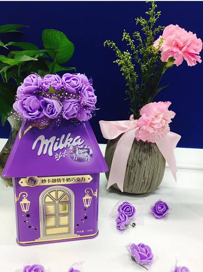 励维亿滋项目组,圣诞节为妙卡特别设计了店中店圣诞元素道具——礼盒蝴蝶结、紫色玫瑰花、圣诞帽、圣诞发箍、圣诞笔等……