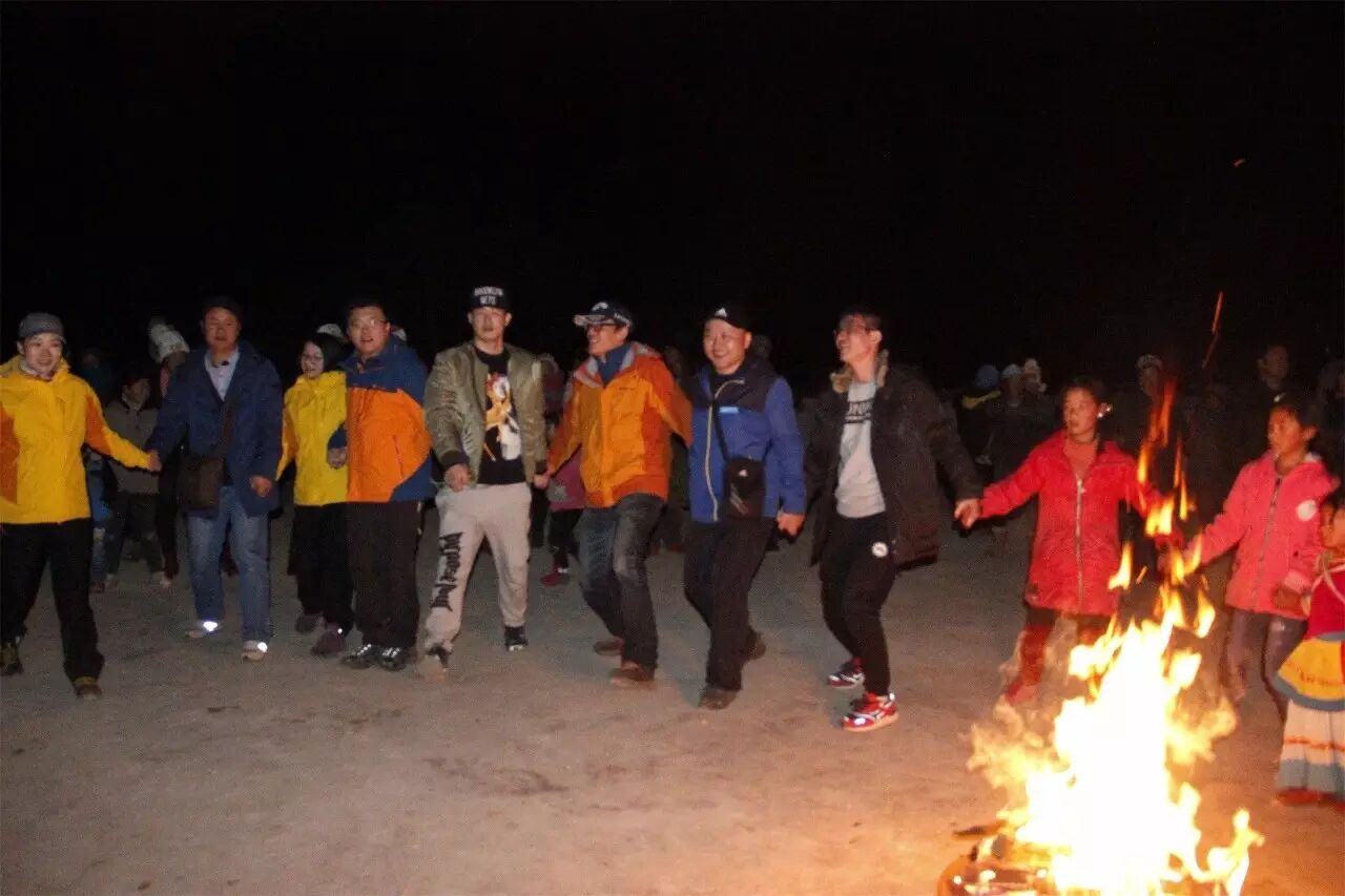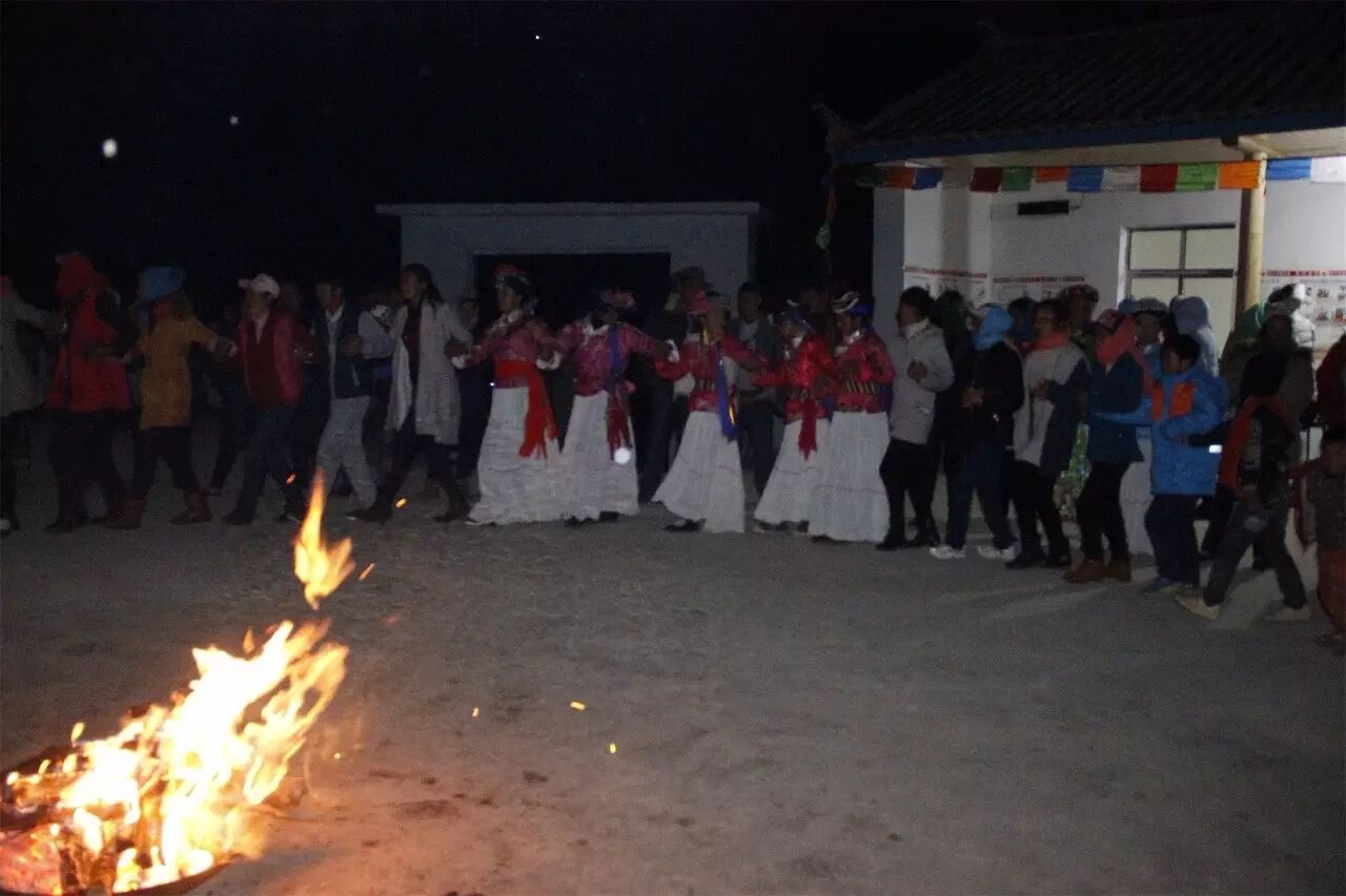 就餐结束,在杨校长的带领下,一行人来参加村里自发举办的篝火晚会,淳朴的民风、欢歌笑语、简单的集体舞也能让人开怀大笑。