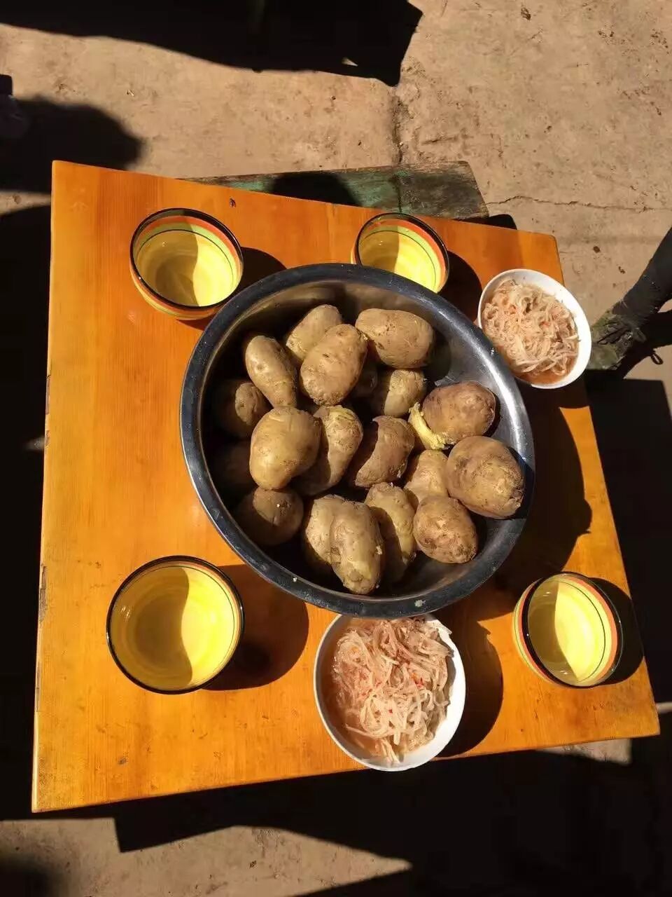 这一盆土豆和咸菜,就是农户大叔一个多星期的伙食