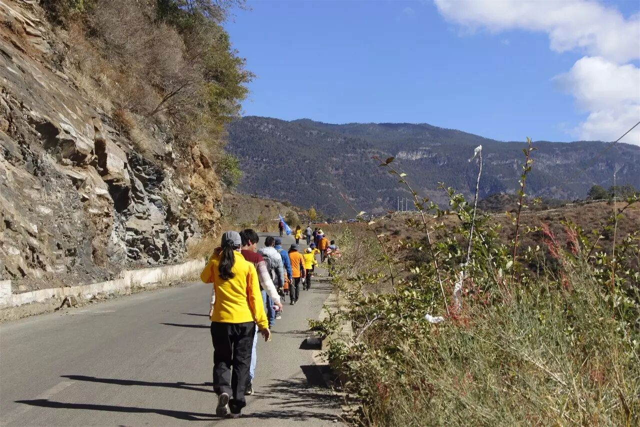 走了一个半小时将近20公里的山路,才到达第一个村庄,平时不怎么运动的一些人已经气喘吁吁。