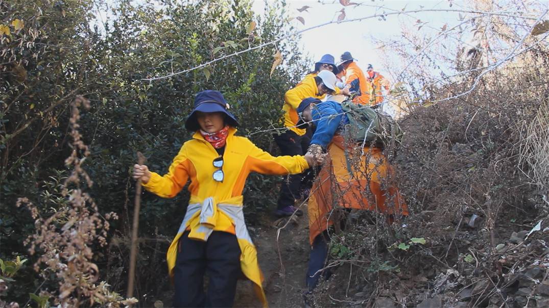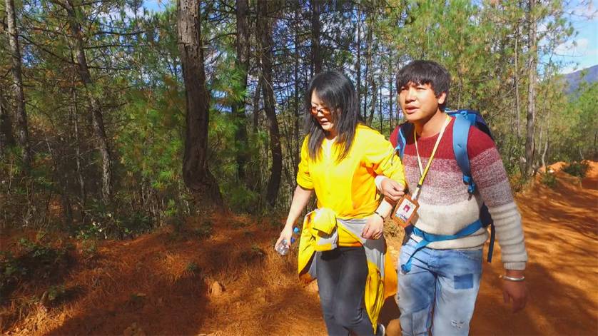 走崎岖的小路,一直默默徒步的陈李走在前面